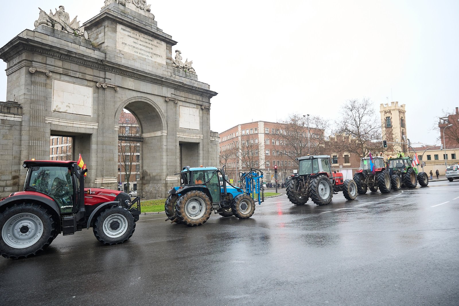 La protesta de agricultores con sus tractores por el centro de Madrid, en imágenes